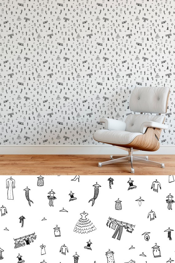 Modern Wallpaper Girls Bedroom Black and White Mermaids | Etsy